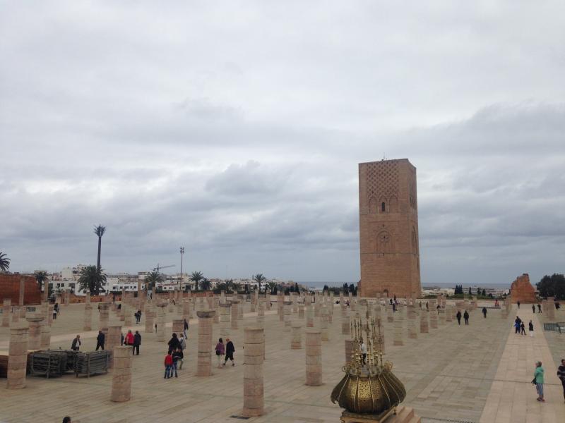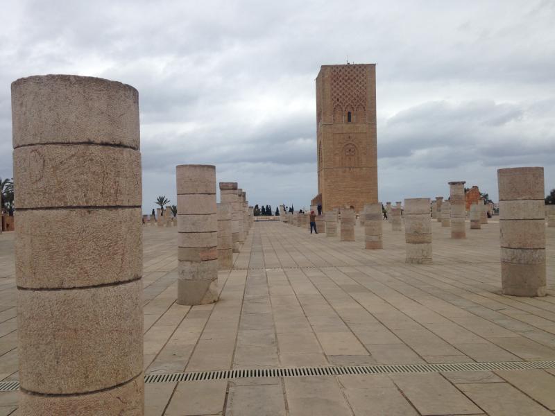 Gezilecek yerler: Hasan Kulesi (Hassan Tower) ve Muhammed V'in Mozolesi'nin bulunduğu alan Rabat'ta görülecek en önemli yerdir. 1195 yılında Yaqup al Mansur devasa boyutlarda bir camii inşasına başlıyor. Bir yandan minare yapılıyor, bir yandan da cami inşası için sütunlar yerleştiriliyor ancak 1199 yılında Mansur ölünce inşaat olduğu gibi yarım kalıyor. İşte bu kırmızı, kumtaşı kule aslında tamamlanamamış minareden kalan yapı. 86 metre olması planlanan minarenin şu anki uzunluğu ise 44 metre ancak bu hali ile de doğrusu çok güzel görünüyor. Cami alanında simetrik olarak yerleştirilmiş 200 kolon ise kule ile beraber fotoğraf çekimi için güzel görüntü veriyor.