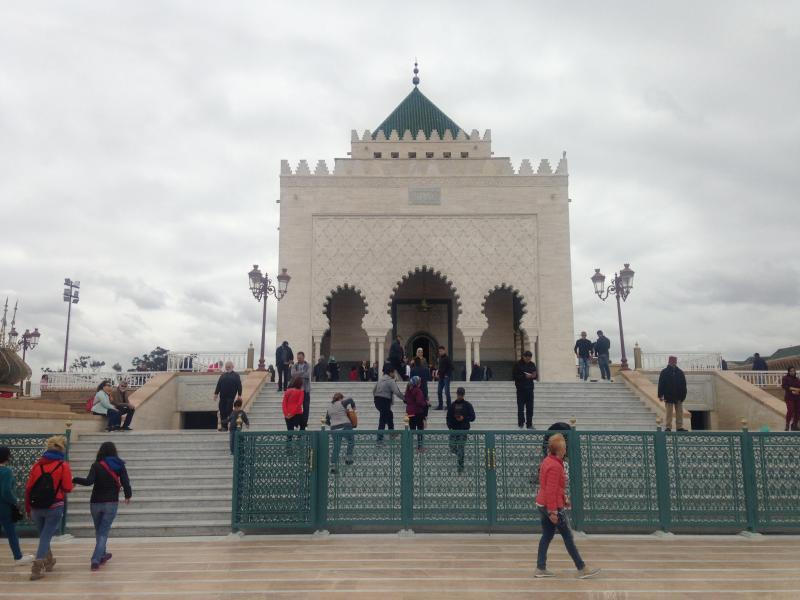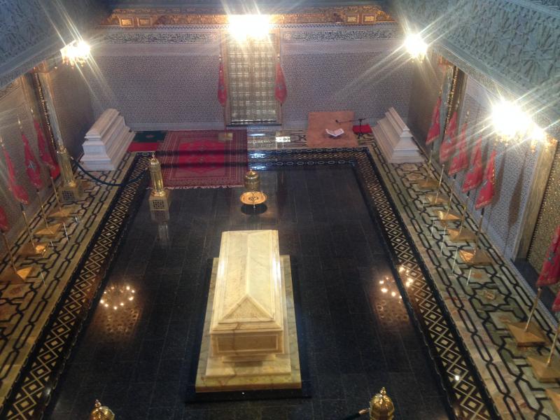 Mausoleum of Mohammed V) görülmesi gereken diğer önemli yerdir. V. Muhammed, Fas'a bağımsızlığını kazandıran ve 1957'den ölümüne kadar ülkeyi yöneten kraldır. Kabristanda kral ile beraber iki oğlunun da mezarı bulunmaktadır. Yeşil çatılı beyaz kabristan dışarıdan oldukça sade görünmesine rağmen içeri girildiğinde aslında kare şeklinde bir balkona girmiş oluyorsunuz. Aşağıdaki üç mezarı ancak yukarıdan görebiliyorsunuz. Dört köşesinde muhafız korumasında olan mozolenin içerisinde yine Fas sanatkarları ustalıklarının zirvesine çıkmış, özellikle tavan kısmına hayran kaldık. Saat 16.00'ya kadar açık olan mozole içerisinde bir müezzin tarafından devamlı Kur'an okunmaktadır.