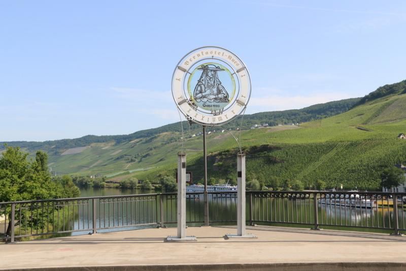 Köprünün tam ortasında Bernkastel-Kues yazılı bir tabela yer alıyor.