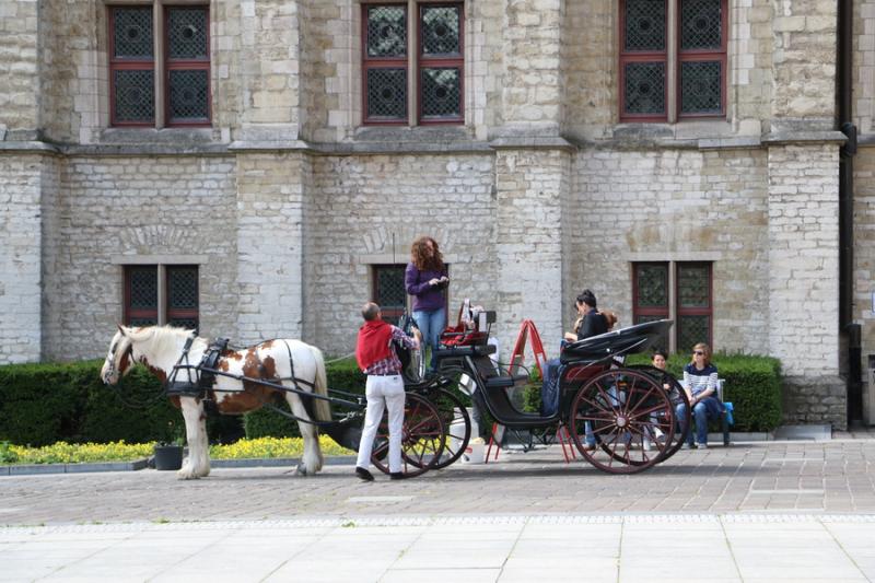 Binanın önündeki atlı arabayı çeken beyaz at, aynı İzlanda atlarına benziyordu. Gent’te at arabası ile dolaşmak oldukça popüler, ancak fiyatları çok uygun değil.