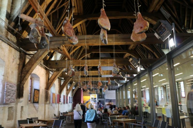 Meydandan sola doğru yürümeye devam ediyoruz ve karşımıza “Kasaplar Çarşısı” çıkıyor. Hangar gibi geniş bir mekânın çatısından aşağıya doğru kurutulmak üzere domuz butları asılmış. Alt kısmı ise restoran.