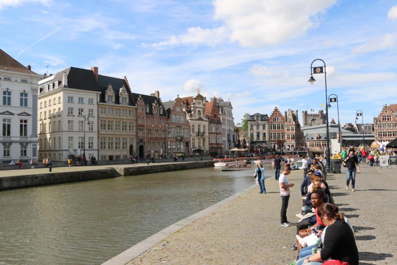 Buradan biraz ileride Gent’in ilk ticaret limanı Graslei en Korenlei yer alıyor. “Avrupa’nın en güzel şehir manzaralarından biri” olarak işaret edilen yerler arasında gösterilen Graslei, kentin en kalabalık noktası aynı zamanda.
