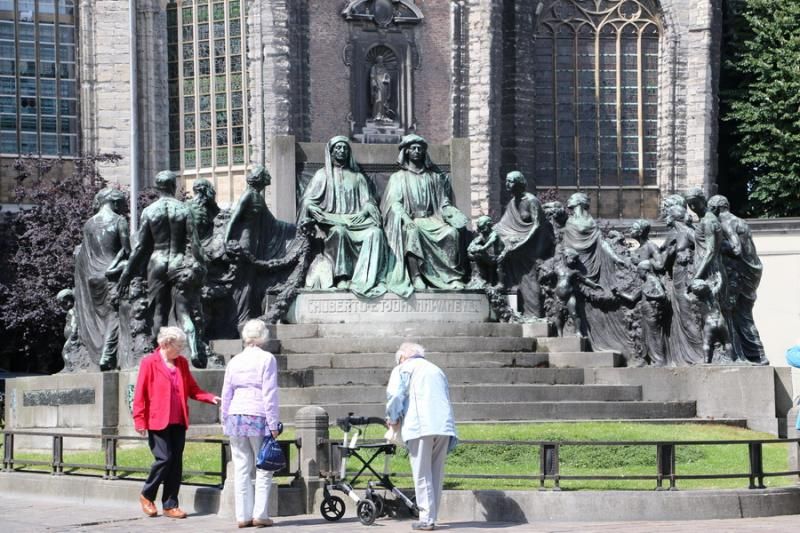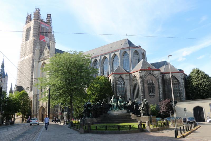 Otobüsün bizi bıraktığı noktadan yürümeye başladık. Gent’te bizi ilk karşılayan yapı St. Bavo Katedrali’nin önündeki bronzdan yapılma kompozisyon heykel grubu oldu. Bu heykel grubu Jan van Eyck tarafından yapılmış.