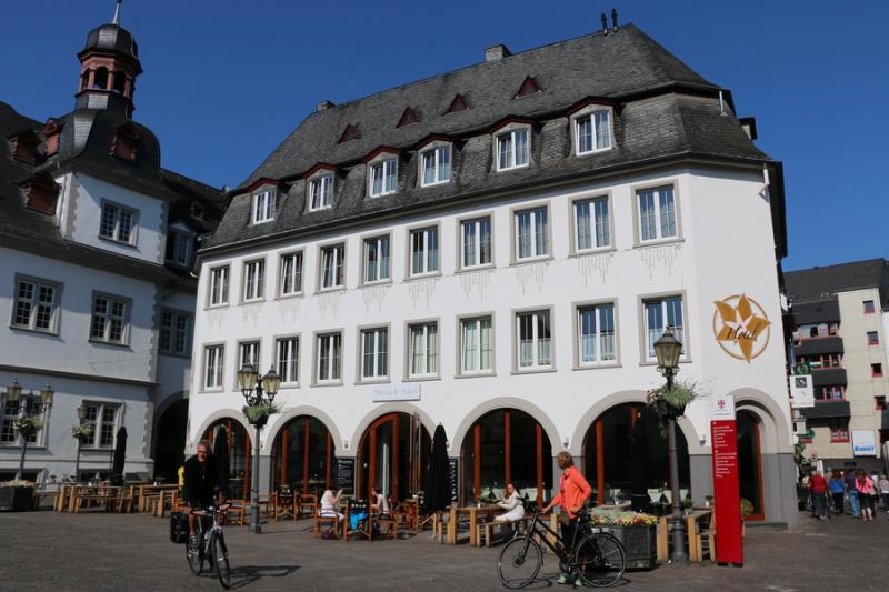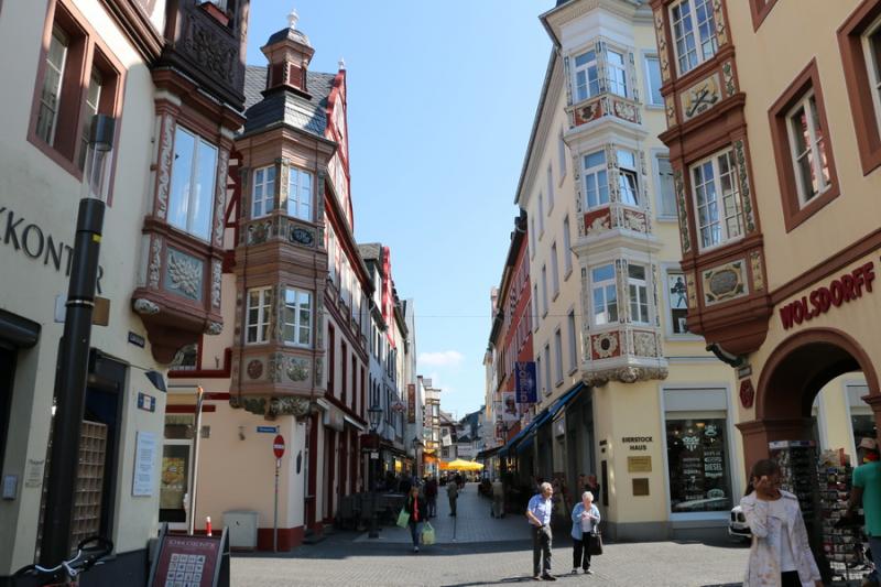 Tarihi hükümet binasını da gördükten sonra ara sokaklara giriyoruz. Aslında üçgenin bir ucundan diğerine geçeceğiz. Ren kıyısından ayrılıyor ve rotamızı Mosel kıyısına doğru çeviriyoruz.