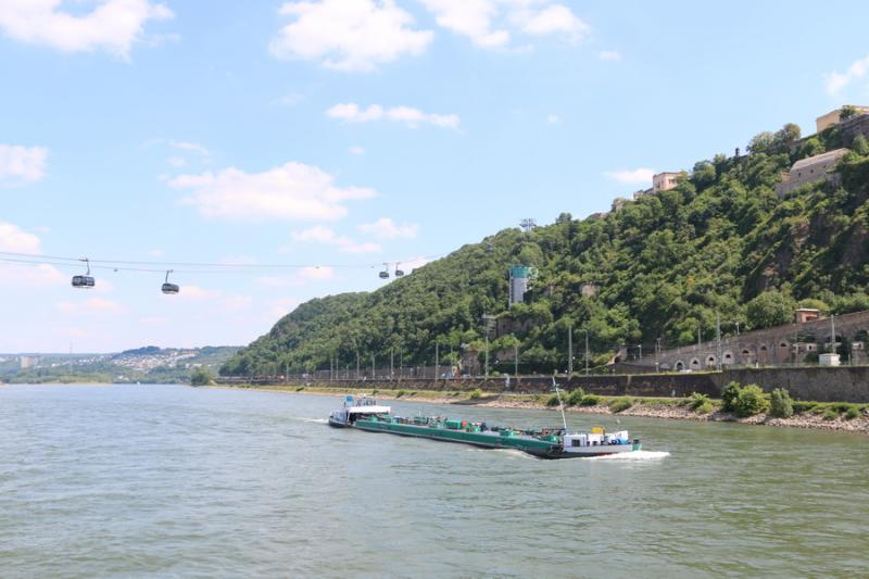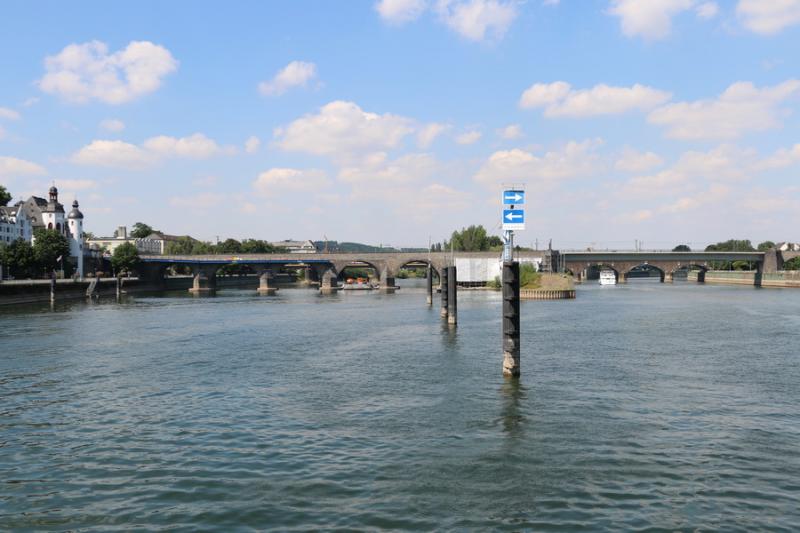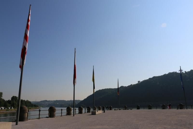 Ren ve Mosel nehirlerinin birleşme noktası aynı bir gemi burnuna benziyor. Bu burunda eşit aralıklarla Almanya’nın eyalet bayrakları asılmış.