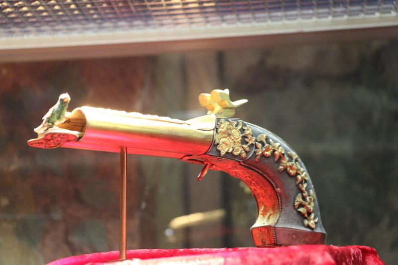 Mesela altından bir silah... Bu silah 19. yüzyılda 1810’lu yıllarda İsviçre’de üretilmiş. Bu gizemli silahın tetiği çekildiğinde mermi çıkmıyor. İçinden bir kuş çıkıyor ve melodi çalıyor.