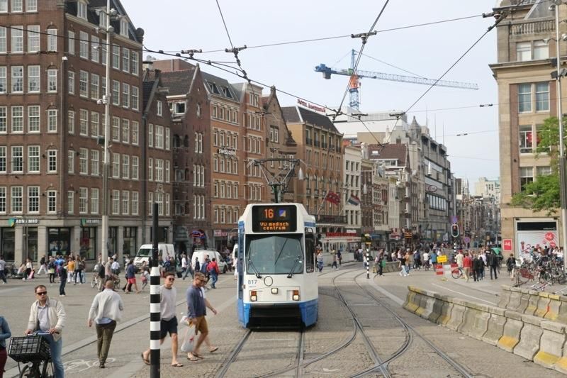 Bu köprüler ile kara parçaları birbirine bağlanmış. Bu kadar fazla kanallı bir kentte yine de geniş sayılabilecek çok sayıda meydan var. Bunlardan en önemlisi 17. yüzyıla tarihlenen City Hall’a (Stadhuis) ve Nieuwe Kerk dedikleri 1400 senelerinde inşa edilmiş olan Yeni Kilise’ye ve çok sayıda kafeye ev sahipliği yapan Dam Meydanı. Bu meydanda bir de İkinci Dünya Savaşı anıtı var.