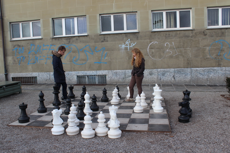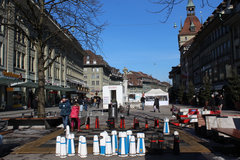 Bu caddeden geri dönüp bu kez de kulenin sağ tarafındaki meydana yürürseniz cafeleri ve meydan ortasındaki dev satranç platformları ile ünlü Barenplatz’a ulaşıyorsunuz. İsviçreliler satranç oynamayı gerçekten seviyorlar. Bu platformlarda satranç oynayan ve oynayanları izleyen pek çok kişiye rastlamak mümkün.