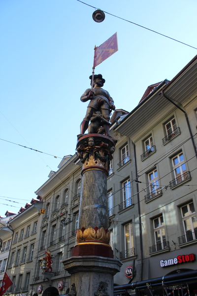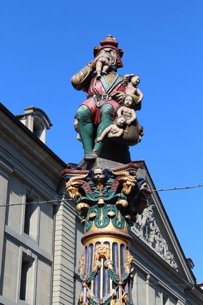 Yine Kornhausplatz’da yer alan ve çocukları korkutmak için yapılmış olan Kindlifresserbrunnen çeşmesi etkileyici.