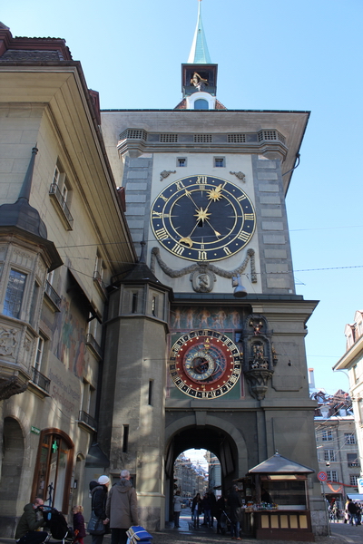 Marktgasse’nin sonunda, Kramgasse’nin başlangıcında ise 16. yy’a tarihlenen bir saat kulesi var. İsviçre saat işçiliğinin en güzel örneği olarak gösteriliyor. Zeitglockebtrum adı ile bilinen saat kulesinde her saat başı bir seremoni yapılıyor.