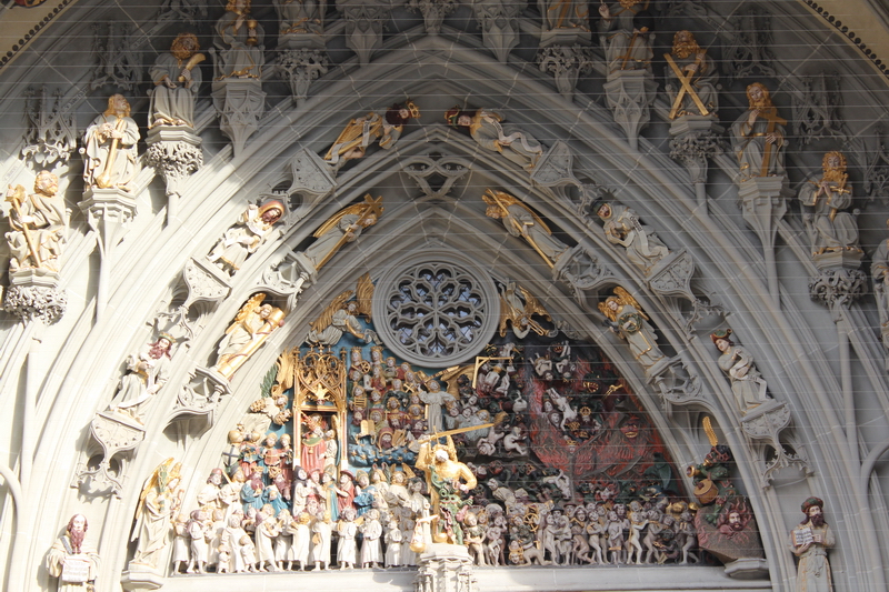 Ana girişinin üzerindeki alınlıkta ise Erhart Küng’ün her sosyal sınıftan toplam 234 lanetli ve kutsanmış ruhu temsil eden "Son Yargı" eseri yer alıyor. Bu eserin tamamlanması 5 sene sürmüş. 1490-1495 seneleri arasında yapılmış.