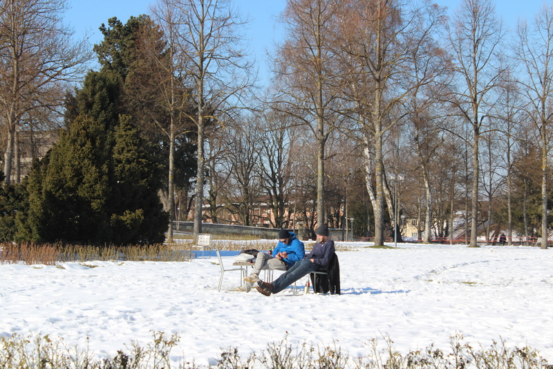 Biz gittiğimizde kış mevsimi olduğundan bahçe karlar altındaydı, bahar ya da yaz mevsiminde çok daha etkileyici bir görüntü sunduğuna eminim. Etraf kar altında olmasına rağmen çevrede sandalyelerini atmış, bir şeyler içerek manzarayı izleyen çok sayıda İsviçreli vardı.