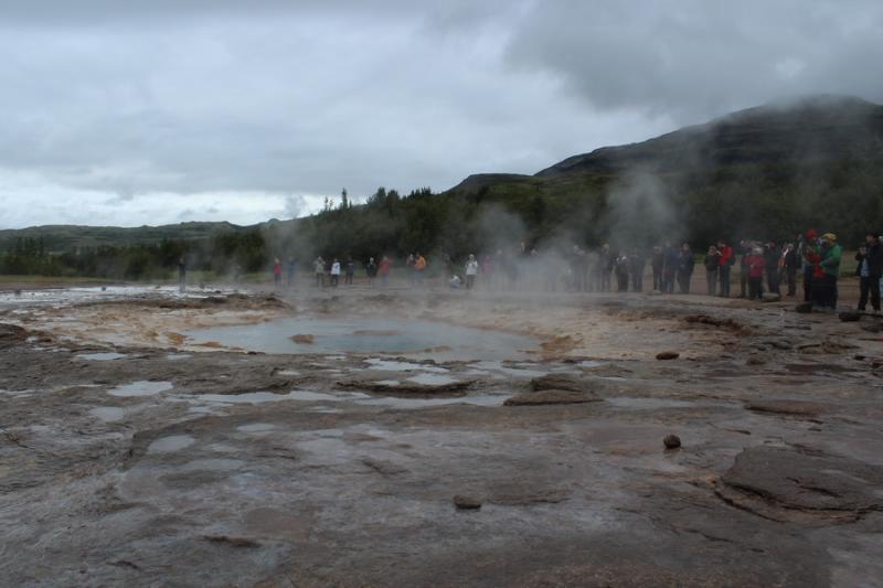Burada toplanmış kalabalığa doğru yürüyoruz. Artık buradaki en büyük gayzer “STROKKUR” ile tanışma vakti geldi. Muazzam bir şey…