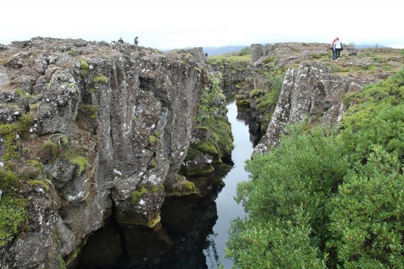 Buradan biraz ilerlediktren sonra pırıl pırıl suyun olduğu ufak bir alan görüyoruz. Burası da Avrupa ve Amerika plakalarının birbirinden uzaklaştığı yerlerden biri. Bu yarık metrelerce aşağıya kadar iniyormuş. Hatta bu plakanın denize uzantısında tüplü dalışlar da yapılıyor. Burada ise ziyaretçiler iki kıta arasında bozuk para atarak dilek diliyorlar.
