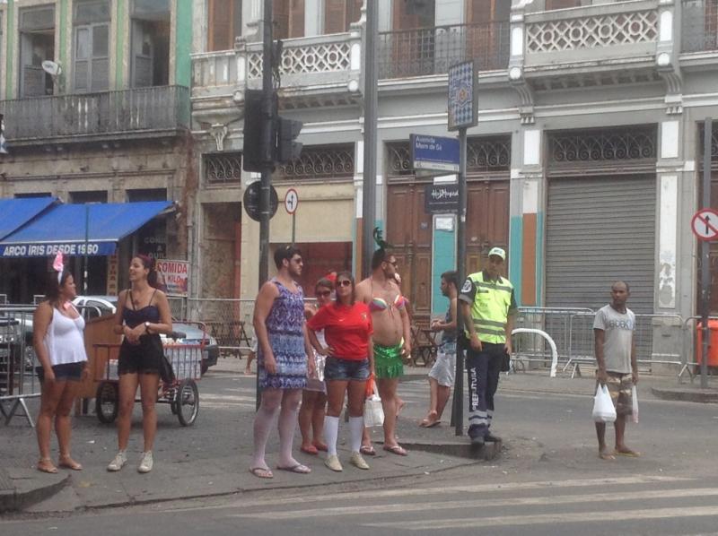 Sahil boyunca tüm kafeler ve seyyar tezgâhlar açık ancak diğer tüm dükkânlar, mağazalar kapalı. Halk kendini coşkulu bir eğlenceye vurmuş. Alışveriş yapmak isterseniz tek seçeneğiniz açık hava pazarları. Sokak aralarından müzik sesleri yükseliyor, davullar çalıyor, yaşlısı genci samba yaparak eğleniyor. Genç erkekler bu ilginç kıyafetleri içinde çok rahatlar. Bence bu kendilerine duydukları özgüvenden kaynaklanıyor. Üstlerinde sütyen altında etek veya yalnızca altına çocuk bezi bağlamış, boynuna emzik takmış veya melek kıyafeti giymiş takma kirpikli bu delikanlılar kız arkadaşları ile beraber hem eğleniyor hem eğlendiriyorlar.