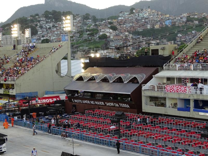 Favelalalarla ilk karşılaşmamız karnaval için geldiğimiz Sambadrome’da olmuştu. Tribüne yerleştik. Birazdan dünyanın en büyük görsel şovu önümüzden geçecek. Milyon dolarlar su gibi akıtılacak. Kendimizi bu zengin şova hazırlarken kafamızı kaldırdığımızda karşılaştığımız manzara ile sarsıldık. Karşımızda, hemen tribünlerin arkasında favelalar. Bir an yutkunuyor insan. Boğazı düğümleniyor. Bu ne yaman çelişki? Onların manzarası da karnaval… Tepeden her şeyi izleyebilecek noktadalar. Bir yanda yakıcı bir yoksulluk, bir yanda inanılmaz paralar harcanan ve sadece bir hafta süren görsel bir zenginlik. Dünya bu kadar acımasız ve izahtan yoksun ne yazık ki. İşte Sambadrom tribünleri ve arkası: