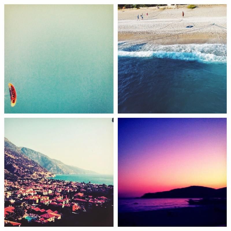 Sonunda otele yerleştikten sonra akşamüstü güneşinin tadını çıkarmak için sahile indik. Buraya geldiğimde çok küçüktüm, hafızamda belli belirsiz kareler vardı ama bu kadar güzel olduğunu hatırlamıyordum. Denizi o kadar güzel ve parlak bir maviydi ki insan çok zor karşı koyabiliyordu. Tabii güneş batarken denize girmenin keyfi de başka oluyor. Sahil kum değil, maalesef taşlı. Denize girerken ayaklarınız taşların içine gömülüyor belki deniz ayakkabısı ile girmek daha kolay olabilir, aklınızda bulunsun.