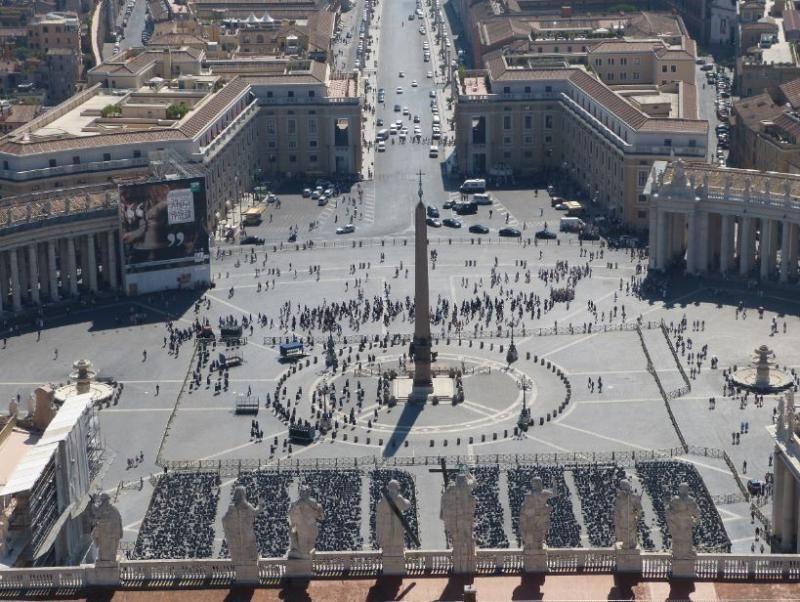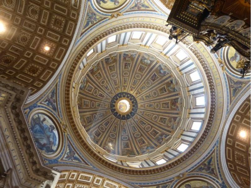 İlk hedefimiz; San Pietro. Katoliklerin en kutsal tapınağı olan San Pietro, dünyanın dört bir yanından gelen turistleri ağırlıyor. Yapı içerisinde çeşitli sanatçıların yüzlerce eseri yer alıyor. En önemli yapı Michelangelo’nun kubbesi altında kıvrılarak yükselen Bernini tarafından yapılan altar tepeliğidir. Kubbe ise 136,5 metre yüksekliğindedir ve Michelangelo’nun tasarımıdır, ama malesef onun zamanında tamamlanamamıştır.