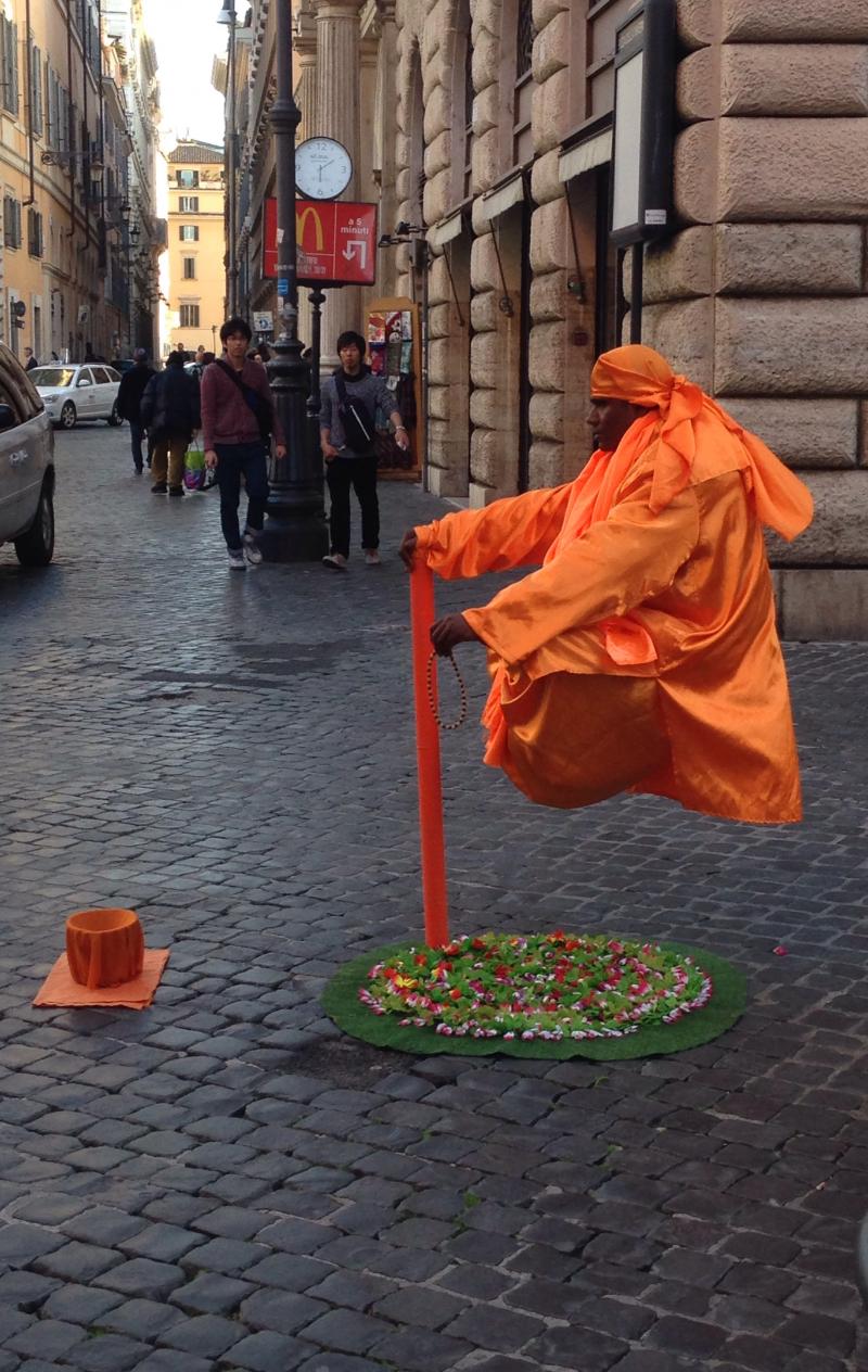 Kiliseyi gezip merdivenlerinde bir şeyler atıştırdıktan sonra Pantheon'a doğru yola koyulduk tekrar, bence bu şehrin her sokağı ayrı bir sanat eseri. Şuraya mini bir not geçmek isterimki gezdiğim üç gün boyunca hiç avm görmedim, hiç şehrin dokusunu bozacak bir bina ile karşılaşmadım ve acayip komik olan ambulans sirenlerinden başka bir korna sesi duymadım. Neyse hedefe döneyim, yol üstünde aşağıdaki amcayı görüyorsanız Pantheon'a yaklaştınız demektir :)