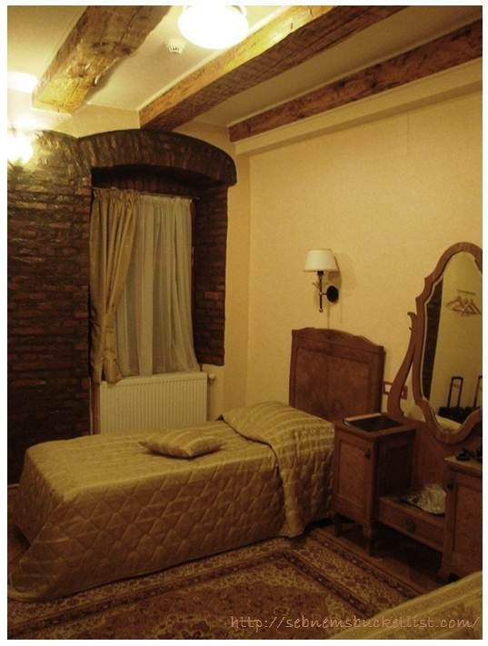 Trenden inince de taksiye binip bi güzel kazıklandık :) (Siz siz olun, giderseniz Cobalcescu, Speed Taxi, Pelicanul dışında taksilere binmeyin). Otelimiz tam meydandaydı, eski ama son derece sevimli ahşap mobilyaların olduğu bir odada kaldık.. Böyle anneanne evi gibi, eski eşyalar, tertemiz çarşaflar, bir de kahveli süt olsa tam anneannemin evindeyim diyeceğim bir ortam. Bu arada kahveli süt; sıcak süt üstüne Türk kahvesi ve şeker eklenerek yapılan ilahi bir tada sahip içecektir, çay bardağında içmenizi tavsiye ederim, sizi anında çocukluğunuza götürür.