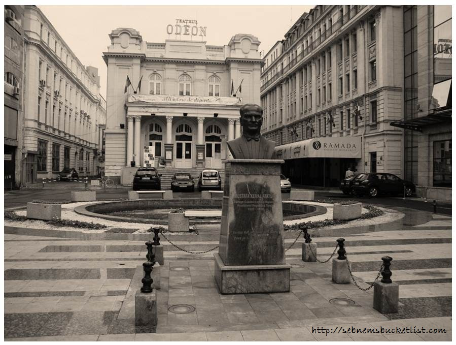 Bükreş’te Odeon Tiyatrosu önünde bir de Atatürk büstü bulunuyor. Türkler tarafından işletilen ve satın alınan otelcilerin girişimiyle bu meydana Atatürk Meydanı adı verilmiş. Tam da 29 Ekim’de dolaşırken bu büstü görünce nasıl gurur duyduk anlatamam.. Önünde onlarca fotoğraf çektik.