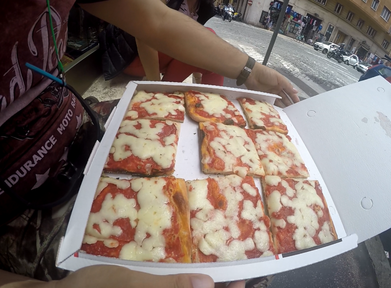 Bu meydanda üç tane kilise ve çok güzel bir çeşme görüyoruz ama karnımız aç olduğundan önceliği pizzacılara veriyoruz :) İtalya'da pizzaları gramla alıyorsunuz. 100 gramı 1,50 ile 2,50 Euro arası değişiyor. Tabi bu bahsettiklerim al git pizzacılar. Mekanda oturduğunuz zaman fiyatlar hemen değişiyor. Açıkçası biz bu seyahatimizde gezmeye odaklandığımız için yeme-içme konusuna çok vakit harcayamadık. Genellikle öğünleri ayaküstü aperitiflerle geçiştirdik. Pizza konusuna dönecek olursak da ilk seferinde acemiliğimize geldi ve değişik çeşitleri deneme gafletinde bulunduk; tabii neli olduğunu bile bilemediğimiz bu pizzaları yiyemedik. Sonrasında genellikle domates soslu kaşarlı pizzaları tercih ettik ki hem her daim lezzetli hem de çok risk almadığımız bir tercih oldu :)