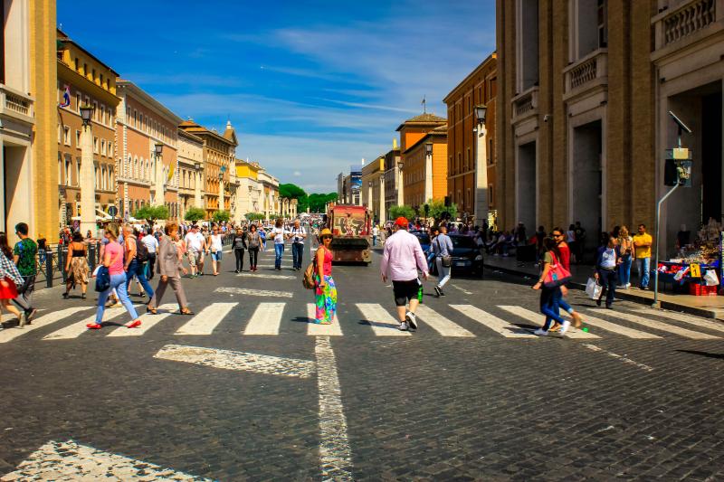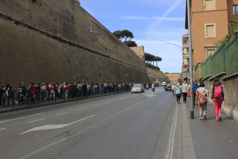 Vatikan'a gitmek için önce terminiye gidip oradan metroya bindik. Aman allahım o ne kalabalık, bizim metrobüsler halt etmiş. Biz her gün Beylikdüzü'ne metrobüsle gidip geldiğimiz için alışkınız tabii ama diğer milletlerden bazı turistler gördük ki etrafa korku dolu gözlerle bakıyorlardı. Ama suç bizde tabii; tam iş ve okul saatlerine denk gelmişiz. Millet işe gidiyor, biz gezmeye. Ottaviano durağında indik ve 10 dakikalık yürüyüşten sonra ulaştık Vatikan'a.