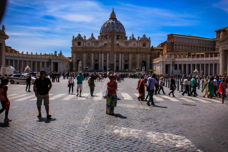 Ülke sınırlarına güvenlik gereği x-ray cihazlarından geçerek giriyorsunuz. Geçiş yaptıktan sonra kendinizi San Pietro Meydanı'nda buluyorsunuz. Burası Bernini tarafından tasarlanmış olup etrafı sütunlarla ve heykellerle çevrili, elips şeklinde oldukça büyük ve ihtişamlı bir meydandır. Bernini'yi İstanbul'a davet edilip Fatih Sultan Mehmet'in gül koklayan portresini yapan ressam olarak tanırız.