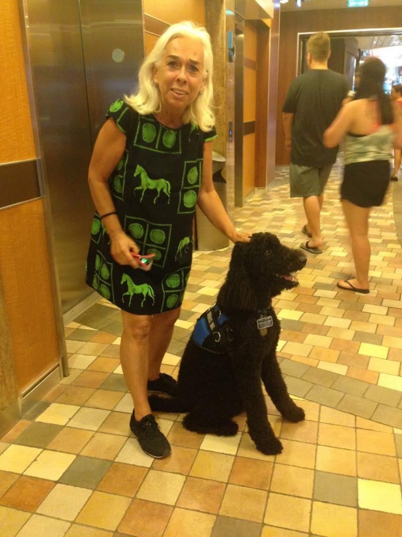 Gemide çalışan 2.300 personel yüzlerinden tebessüm hiç eksilmeden müşteri memnuniyeti için azami gayret sarf ediyor. Aynı zamanda gemide bir de güvelik olarak çalışan köpek var.