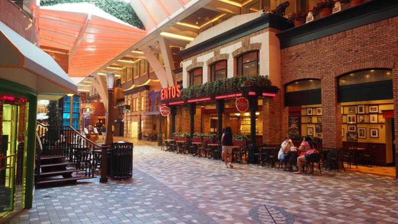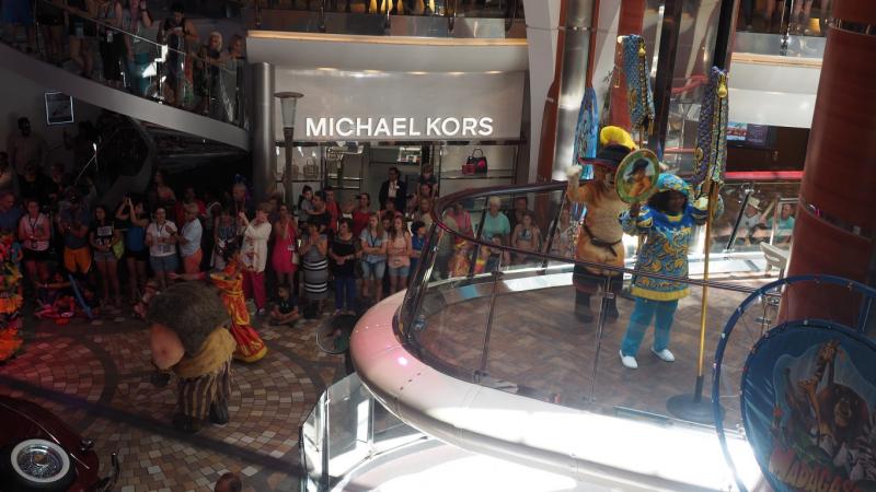 Gemide lobinin bulunduğu caddede pek çok ünlü markanın mağazaları ve kafeler mevcut. Bu caddedeki şovlar ise karnaval havasında.