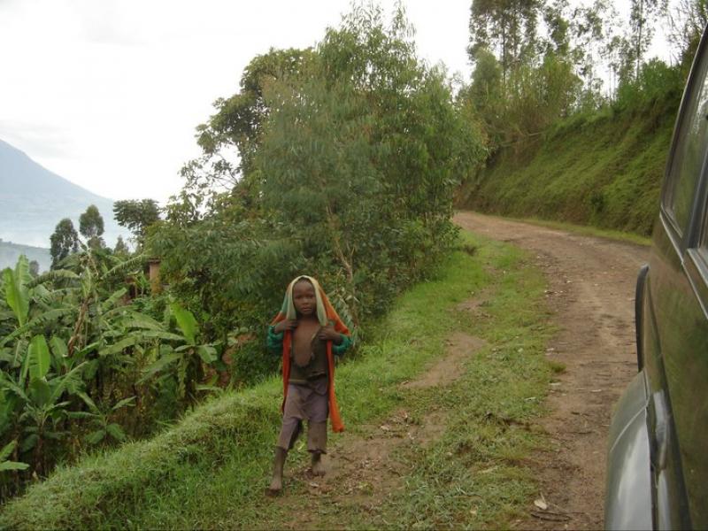 Ertesi sabah saat 5.00'te erkenden yola çıktık güneşin kızıllığının palmiye ağaçlarının yemyeşil örttüğü tepelerin ardından gülümsediğinde biz çoktan Kigali'yi terk etmiştik. İlk durağımız gorillerinde ziyaret edildiği volkan bölgesi. Arkadaşlarım ana yolu terk edip dağ köylerinden gideceğimizi böylelikle belki hiçbir turistin gitmediği bölgeden geçeceğimizi söylüyorlar sevinçle ellerimi çırpıyorum. Dağlık Afrika'nın kızıl toprağının çukurlarla taşlarla kaplı yola dalıyoruz. Yol boyu gene köylüler yürüyorlar ama jeep in sesini duyunda duruyorlar bizi inceliyorlar sert yüz ifadeleriyle ama gülümserseniz hemen kocaman gülümseme yerleşiyor yüzlerine ve el sallıyorlar jeepimiz gözden kaybolana kadar. Çocuklar farklı onlar hemen el sallıyor ve Muzungu diye bağırıyorlar sağlıklı görünüyorlar, durup fotoğraf çekmek istesem hemen kaçıyorlar zaten yetişkinlerin fotoğrafını çekmeyi çoktan bıraktım. Kadınlar sırtlarında yanlarında arkalarında çocukları ve kafalarında çamaşır dolu sepetlerle yol kenarlarında akan küçük derelerde çamaşır yıkamak için gidiyorlar bazılarını yıkarken görüyorum sabunları yok. Çok çocuk var çok tatlılar pırıl pırıl gözleri bence erken yürüyorlar yol üzerinde bana sorulsa daha emekleme safhasında bile olamayacak minicik bebekler koşuyor. Burada doğurgan bir kadına düşen çocuk sayısı 6,2 imiş. Tabiat harika arazi vitesli arabayla zorlukla ilerliyoruz her seferinde yolda kalacağız diye korkuyorum ama jeep keçi gibi tırmanıp iniyor sallantıdan midem bulanıyor neyse gördüklerim her şeye değer.