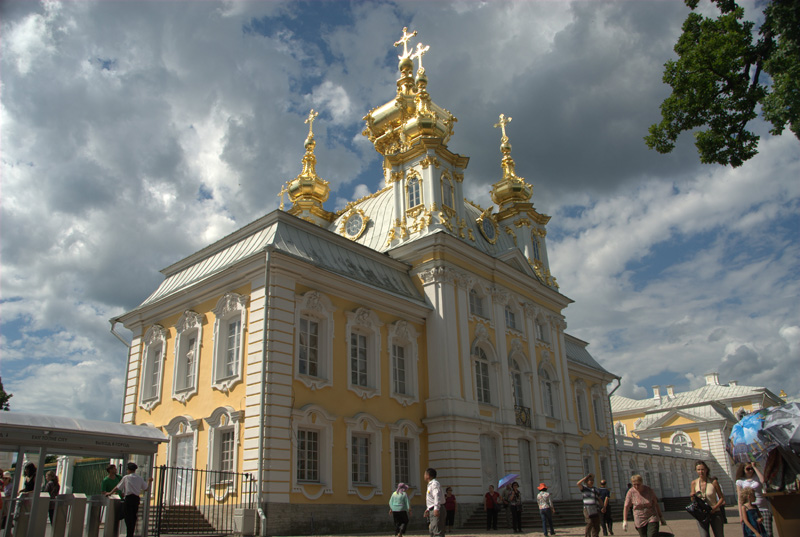 Petergof; Peter’in avlusu anlamına geliyor... 1000 hektardan fazla bir alan üzerine yaklaşık 30 bina ve pavyon inşa edilmiş… I.Petro bizzat kendisi arazinin yerini seçerek binaların ve parkın fıskiyelerinin yerleşim planını çizmiş… Bu planların içinde bahçedeki fıskiyelerde hazırladığı özel tuzaklar da varmış… I.Petro gelen konuklarına sürpriz şakalar yapmayı çok severmiş... Çoğu zaman konuklar parkta dolaşırken bu şakalar yüzünden sırılsıklam olup saçlarındaki ve yüzlerindeki pudralar ve boyalar akarmış.-Kadın konukların halini düşünemiyorum!... -Burası II.Dünya Savaşı sırasında Alman’lar tarafından yakılıp yıkılmış… Ama daha öncesinde Rus’lar taşınabilir her şeyi buradan kaçırmışlar,taşınamazların fotoğraflarını çekip resimlerini yapmışlar ve savaş bittikten sonraki yıllarda tekrar eski şeklinde yeniden inşa etmişler…