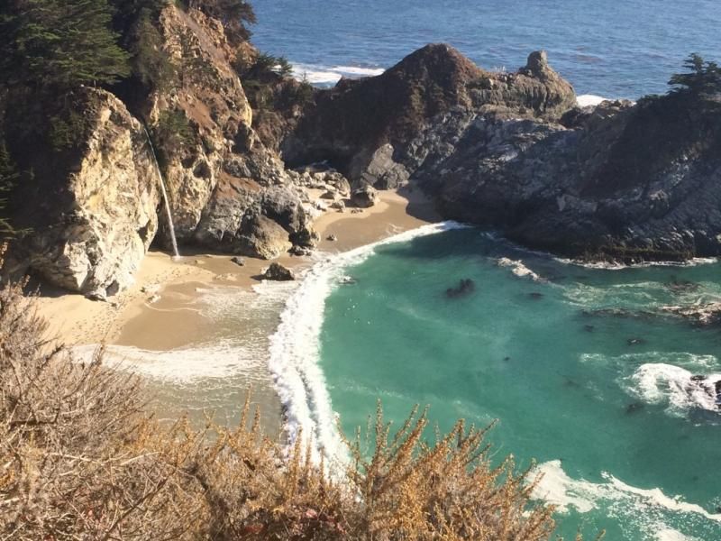 Bu aşmış manzarayı geçtikten sonra Mcway Falls isimli yere ulaştık. Mcway Falls Julia Pfeiffer Burns State Park'ın içinde kalan bir şelale. Parktan girdikten sonra 5-10 dakika kadar yürüyerek dünyanın en güzel manzaralarından birine ulaşabilirsiniz. Bizim nefesimizi kesti diyebilirim. Beni en çok etkileyen manzaralardan biri kesinlikle! Kelimelerin tarif edemeyeceği bir etki bıraktı üzerimde.