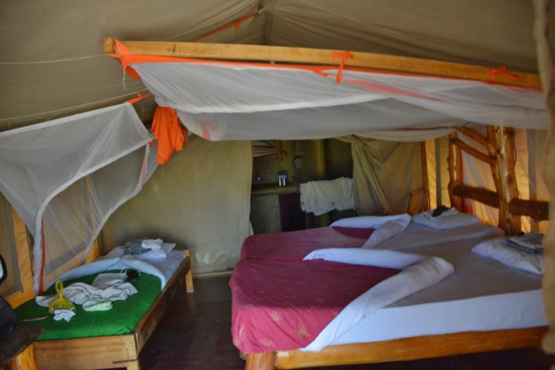 Çadırımızın içinde yatakların bulunduğu bir bölme ve de tuvalet ile duşun bulunduğu ayrı bir bölme vardı. Her iki bölmede de birer ampul içerisini aydınlatmaya çalışıyordu. Tabii ki bu sadece akşam 22.00’ye kadar sürüyordu çünkü jeneratör bu saatte kapatılıyordu. Gecenin geri kalanı için çadırdaki mumdan başka bir imkânımız bulunmuyordu. Aynı zamanda çadırın içinde bir elektrik prizi de bulunmuyordu ve bu nedenle şarj edeceğimiz tüm cihazlarımızı restoran bölümüne götürüp şarj ediyorduk. Tüm bu imkânsızlıklara rağmen çadırın içinde, hemen yatağımızın yanındaki bir sehpanın üzerinde bir İncil bulunuyordu. Evet, belki elektriğimiz yoktu ama İncil’imiz vardı.