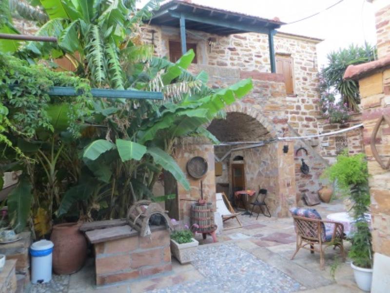 Şimdi artık akşamüstü oldu ve daha önce internetten yer ayırttığımız otelimize gitme zamanı… Chios’un dış semtlerinden ve havaalanına yakın olan Kambos’a doğru ekibim ve ben yola koyuluyoruz. Tabii ki haritadan Kambos’u bulduk ama oteli bulmamızın imkânı yok. Hemen bir benzin istasyonuna giriyorum ve sahibi ana-kız, bizim oteli bilmeseler de internetten buluyorlar ve sahibine telefon ediyorlar. Hemen 15 dakika sonra otelin sahibi Yorgo arabasına atlayıp geliyor ve bizi istasyondan alıyor. Arkasına takılıyoruz ve gerçekten mümkün değil burasını tek başımıza bulmak. Otele gelince yemyeşil ağaçların içersinde 400, 150 ve 30 yıllık 3 ayrı taş binadan oluşan butik otelimize yerleşiyoruz. Önce Yorgo bize Türk kahvesi ikram ediyor ve misafirperverlik örneği gösteriyor.