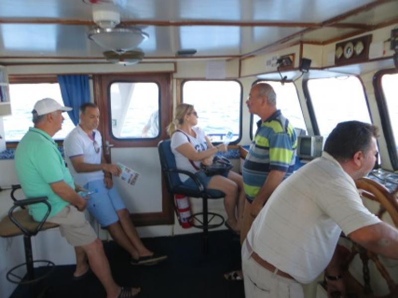 Ama kaptan Süleyman’ın gönlü büyük. Bizi kaptan köşküne davet etti, çaylar ısmarladı ve 50 dakikalık yolculuğumuz da sayesinde pek keyifli geçti.