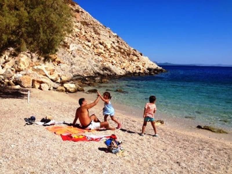 Git git derinleşmeyen kumluk denizi ile bana pek hitap etmese de, küçük çocuklu aileler için gayet ideal. Deniz o kadar sığ ki sahilden epey uzaklaştığımız halde çocuklarla yakalamaca oynanabiliyoruz : ) Elinta ise Mavra Volia gibi bakir, ancak ona göre çok daha ıssız, tek tük insanın geldiği yine çakıllı (bu sefer bildiğimiz çakıl renginde) yine şıkır şıkır bir deniz...