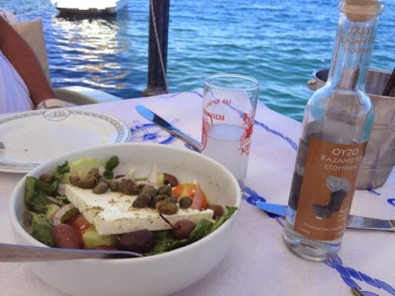 Mayoları giyip yol yorgunluğunu atmak için suya dalıyoruz. Sonra arabamıza atlayıp Trip Advisor’dan methini okuduğumuz Kataraktes bölgesindeki Meltemaki Fish Tavern'i aramak üzere yola koyuluyoruz. Meltemaki’yi buluyoruz bulmasına da Meltemaki, Türk kaynıyor. Eşimin yurtdışında Türk alerjisi Samos gezi yazısından da malum, deniz kıyısında bir masada oturmuşken kalkıp hemen yanındaki daha lokal bir tavern’e geçiyoruz. İyi ki de geçiyoruz.