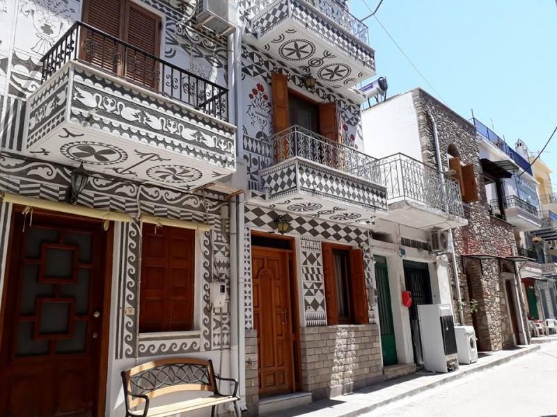 İkinci durağım Pirgi Köyü idi. Burada da evler birbirine yakın ama üzerlerindeki geometrik şekiller bu köye ayrı bir hava vermiş. Bu şekiller kazıma yöntemiyle yapılıyor. Bu yönteme ksista (xysta) deniyor. Bu köyde bu yöntem Cenevizliler tarafından uygulanmış. Çatalla sıvayı kazıyarak bu şekilleri yapıyorlarmış.