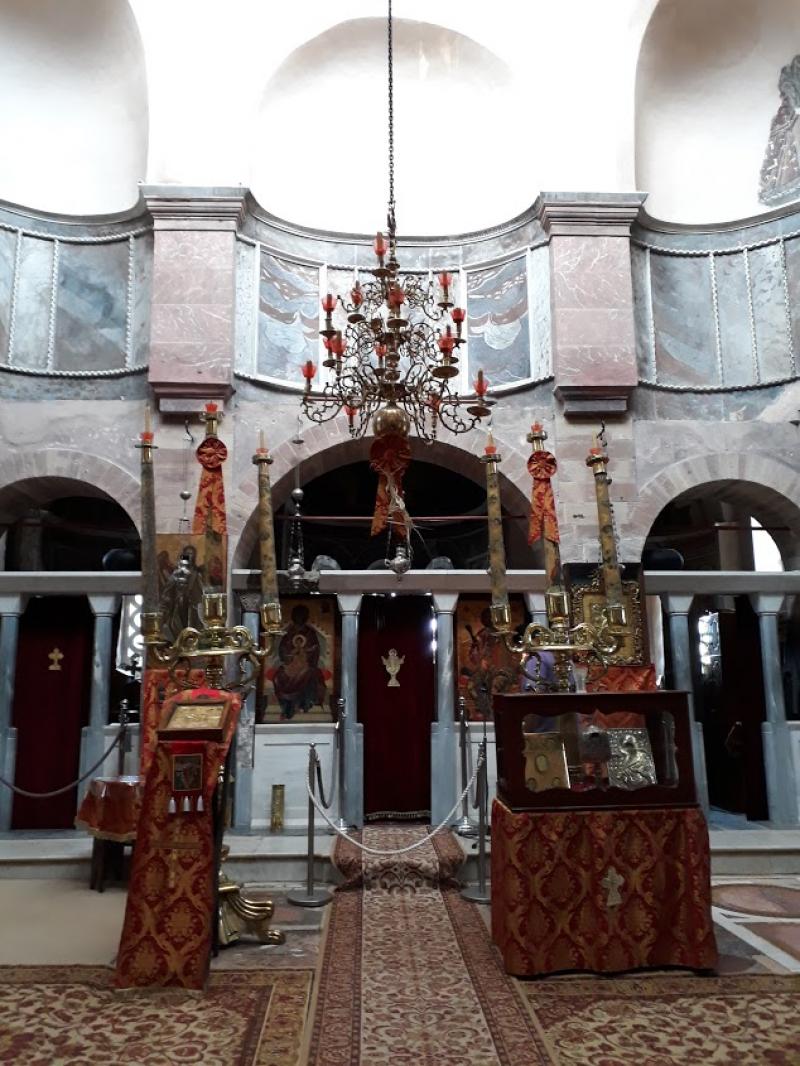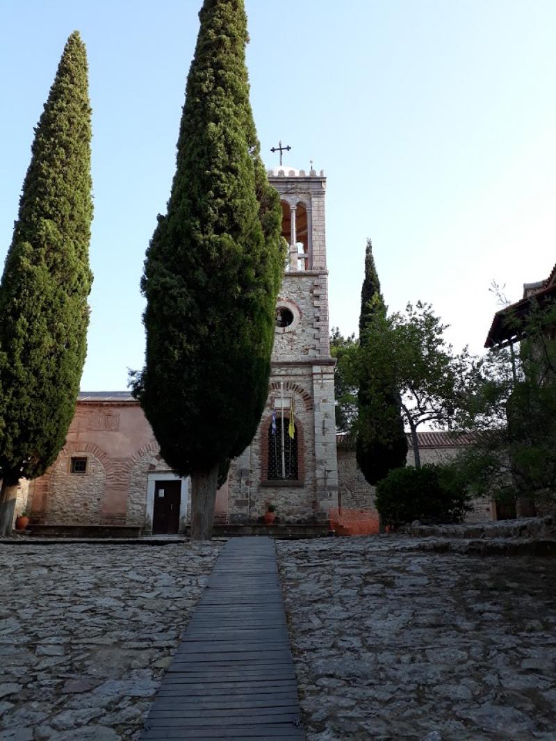 Köyü gezip dondurmamı yedikden sonra Neo Moni Manastırı'na çıktım. Ormanın içinde yaklaşık 40 dakika yolculuk yaptıktan sonra vardım. Nea Moni, UNESCO Dünya Mirasları Listesi'nde yer almaktadır. 11.yüzyıldan kalmadır. Provateio Oros Dağı'ndadır. Buradan manzara çok güzel denizi, adayı seyrebilirsiniz.