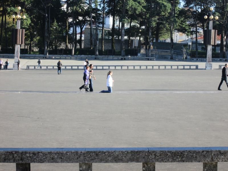 İlk dikkatimi çeken ise kilisenin önündeki geniş meydanda, işaretli bir yol üzerinde, dertlerine deva arayan insanların dizleri üstünde karşı tarafta inşa edilmiş büyük bir hac işaretine doğru ilerlemeleri oldu. Sadece dizleri üzerinde yürüyenler değil, yakınları tarafından tekerlekli sandalye ile buraya getirilip bu yoldan geçerek iyileşmeyi uman insanları da görmek beni çok şaşırttı.