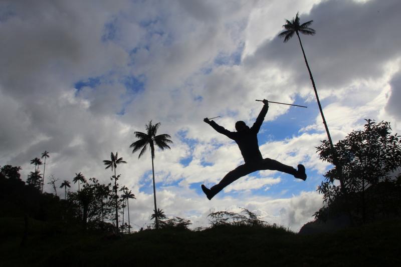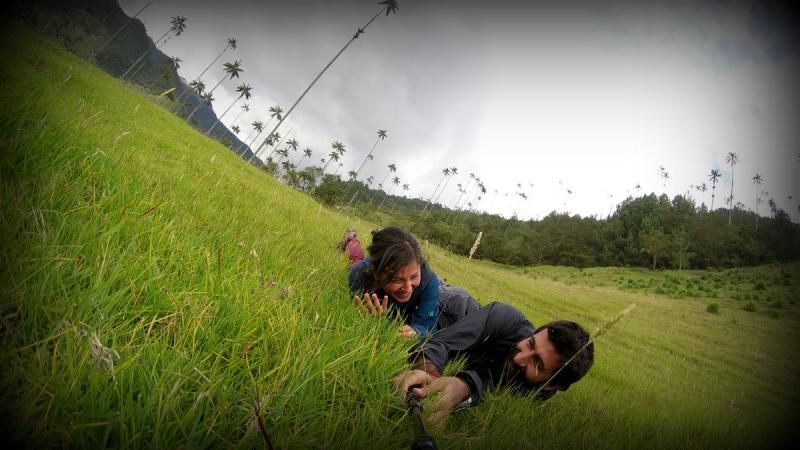 İnişe geçtiğimiz için yolun bundan sonraki kısmı kolay oldu. Bir süre yürüdükten sonra yeniden tek tük palmiyeleri görmeye başladık ve en sonunda fantastik Cocora Vadisi'ne ulaştık. Sadece uzun uzun palmiyelerin bulunduğu yemyeşil bir vadi burası. İnsanın inanası gelmiyor manzaranın gerçekliğine! Koştuk, hopladık, zıpladık, çimlerde yuvarlandık, ne yapacağımızı şaşırdık sevinçten.