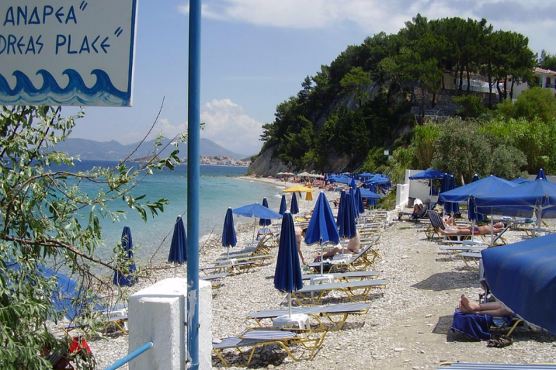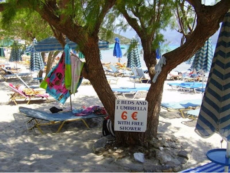 Burası diğer ikisi gibi sadece plaj değil aynı zamanda bir yerleşim yeri. Pek çok restoran ve otel de mevcut. Liman tarafında, eğer onları tercih edersek bize % 20 indirim vaat eden ablanın restoranına çöküyoruz.