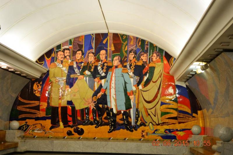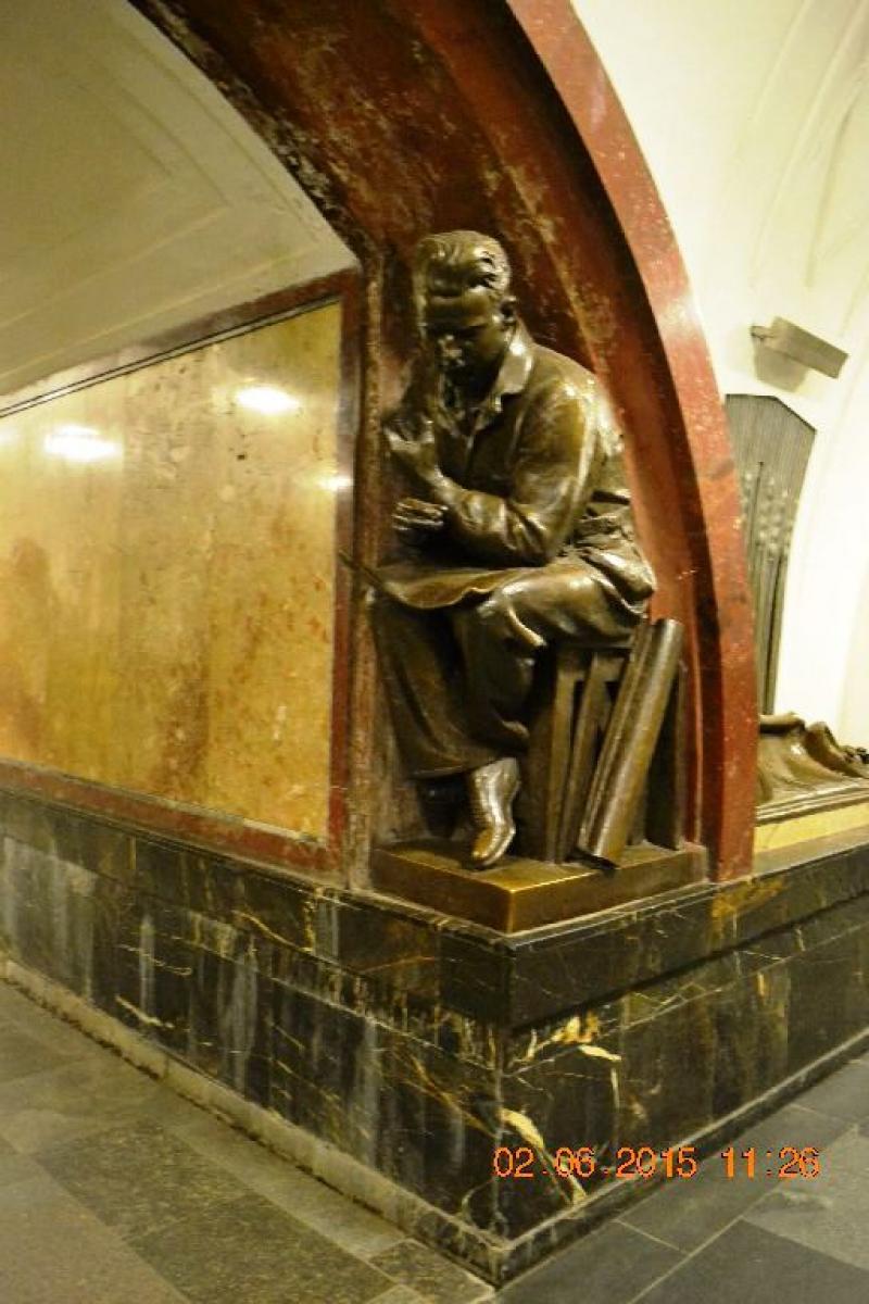 Biz sadece birkaç istasyon gezdik ama sanırım her biri ayrı güzellikte, her istasyonda farklı. Gösterişli avizeler var her istasyonda, kimi istasyonda tüm duvarı kaplayan resimler, kiminde mozaikler, sütunlar müthiş süslü. Bir istasyon ise gerçek anlamda bir heykel müzesi, koridor boyu her köşeye dizilmiş 78 bronz heykellerin her biri birbirinden farklı ve güzel. Zemindeki mermerler, merdivenler ve ferforje korkulukları ile yer altında bir müze, bir sanat yapıtı.
