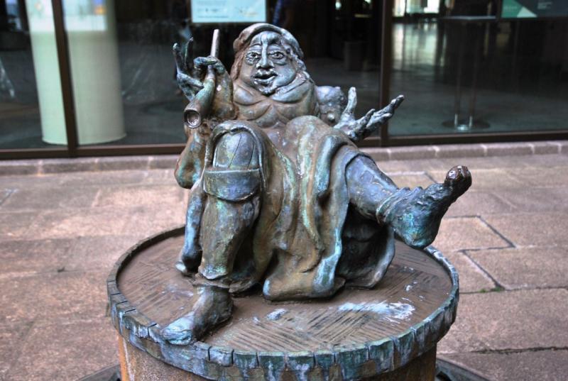 Konser salonunun hemen önünde ise kentin müzisyen yüzünü hikayeleştiren bir heykel var. Rivayete göre bu müzisyen içki karşılığı sokaklarda müzik yaparmış.