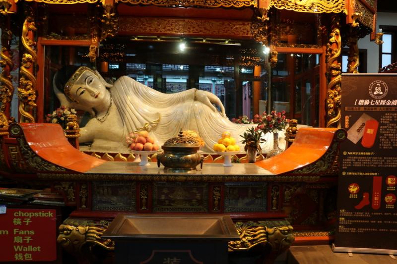 Waitan bölgesindeki bir diğer önemli tapınak da 1882 senesine tarihlenen Jade Buddha yani yeşim taşlı buddha tapınağı. Tapınak içinde 2 tane buddha heykeli var. Ama ikinci kattaki 1,9 metre yüksekliğinde ve 1,5 ton ağırlığındaki beyaz yeşim taşından yapılmış buddha heykeli en değerli olanı. Tabii içeride fotoğraf çekmek de yasak. Alt katta beyaz yeşim taşından yapılmış olan yatan buddha heykeli de oldukça gösterişli. Çinliler yeşim taşının negatif enerjiyi aldığına inanıyorlar.