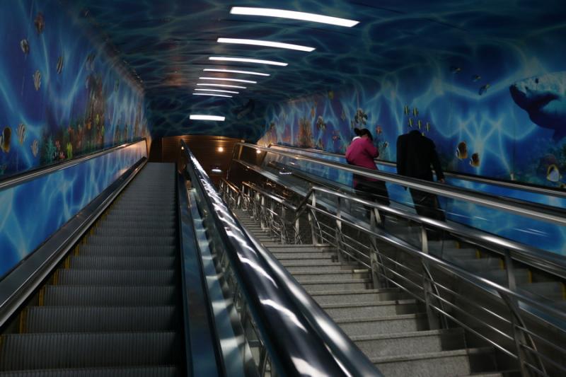 Hazır Pudong bölgesinden bahsediyorken buradaki Şangay’ın sembolü haline gelmiş olan Oriental Pearl TV Kulesi’ni de biraz daha detay anlatmakta yarar var. Benim önerim eğer Waitan bölgesinde konaklıyorsanız, Oriental Pearl Tower’a gitmek için nehrin altından geçen tüneli kullanın. Tünele doğru yürüyen merdivenler ile iniyorsunuz. Hatta deniz seviyesi altına indiğinizi hissettirmek için yürüyen merdivenin bulunduğu tüm bölge su altını resmeder şekilde boyanmış.