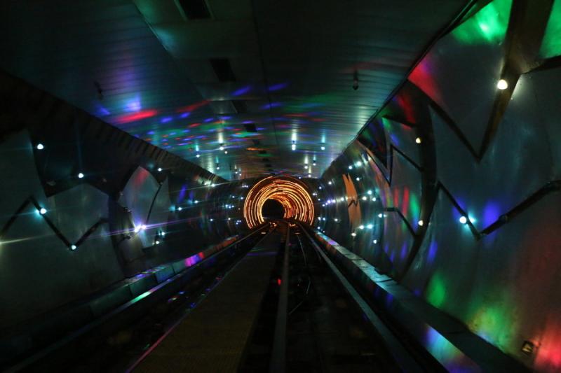 646 metre uzunluğundaki tünelin girişinde raylı sistem üzerinde giden ufak kapsül gibi araçlara biniyorsunuz. Bu tünel içinde Pudong bölgesine doğru geçerken 4-5 dakika boyunca ses ve ışık oyunlarına maruz kalıyorsunuz. Çok süper olduğunu söyleyemeyeceğim. Ama bir kez denenebilir. Bu tünelden saatte 5.000 kişi geçiyormuş.