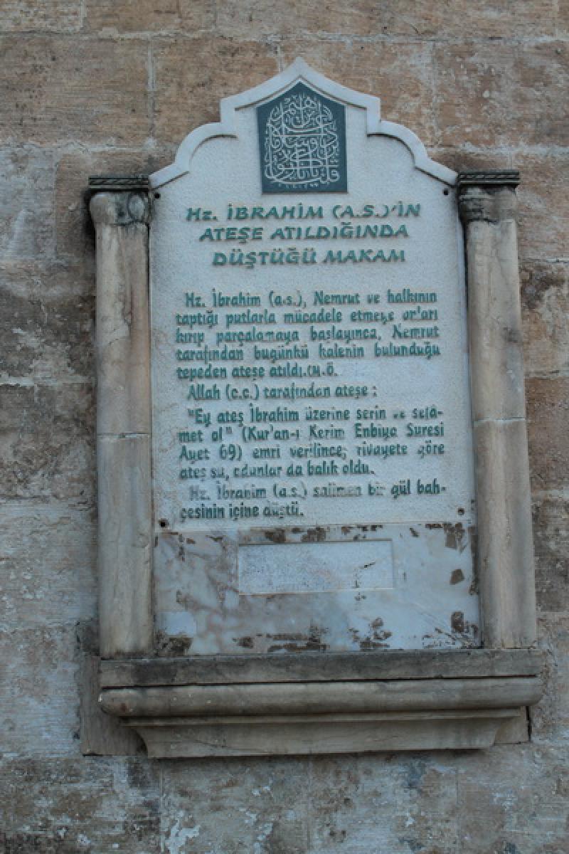 Hikayeye göre, Peygamber, devrin zalim hükümdarı Nemrut ve halkının taptığı putlarla mücadele etmeye, tek tanrı fikrini savunmaya ve yaymaya çalışınca, Nemrut tarafından günümüzde kalenin bulunduğu tepeden ateşe atılmış.