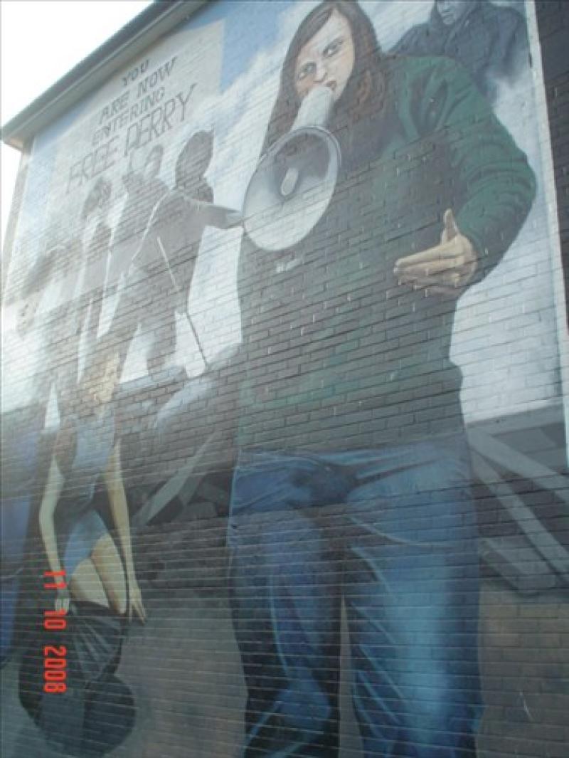 Bu süreç içerisinde hafızalara kazınan olay Kuzey İrlanda’nın Londonderry kentinde yaşanan Kanlı Pazar’dır. 1972 yılında 13 İRA yanlısı, gösteri sırasında Britanya askerleri tarafından vurularak öldürülmüştür. Hikayeyi olay yerinde bana anlatan İrlandalının bunca yıla rağmen olayı anlatırken gözleri doldu. Londonderry, sade bir sınır kenti. Bina büyüklüğündeki çok sayıda duvar resimleri insanı etkiliyor.